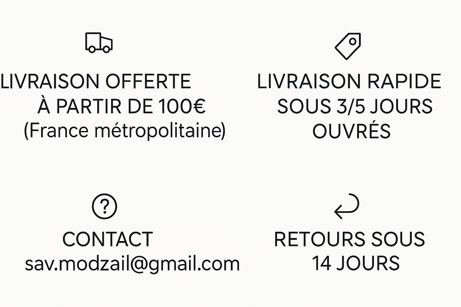 - Livraison en point relais : sous 24 à 48 heures jours ouvrés.